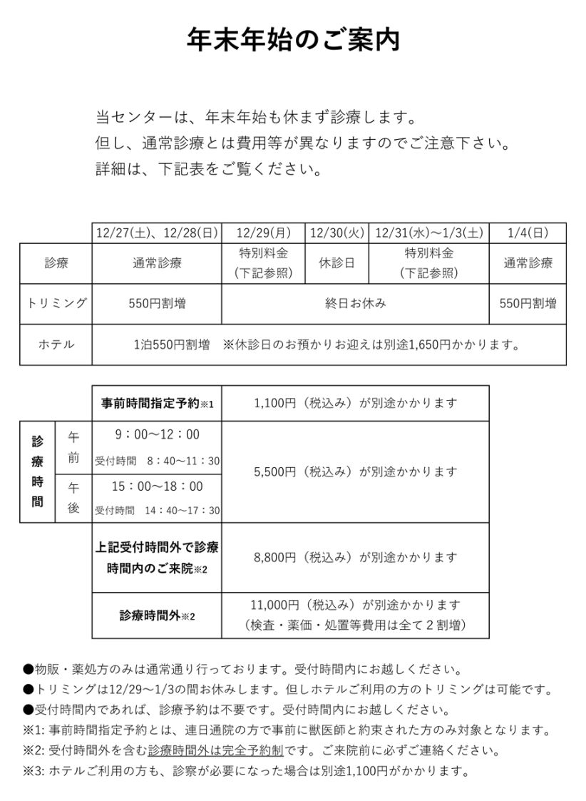 9:00-12:00/15:00~18:00 [ 土日祝祭日 ]