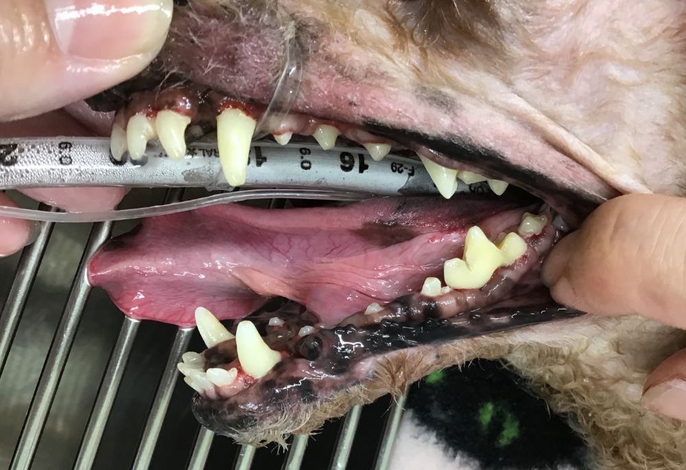 犬の口腔外科のビフォー(1枚目)・アフター(2枚目)写真です。